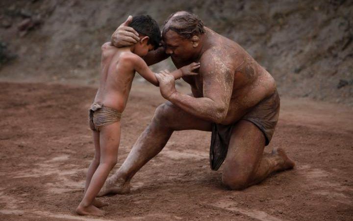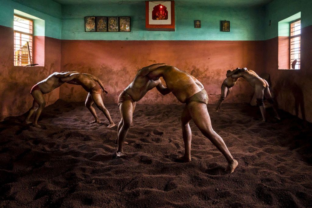 The ancient traditional art of Indian wrestling, known as kushti, still thrives in wrestling gyms, or akhara, scattered around the country. Akhara are one of the few places in India where Hindu men who come from different castes are considered equals. Akin to a gym, local men go to train at their akhara using a range of fairly simple but effective equipment.